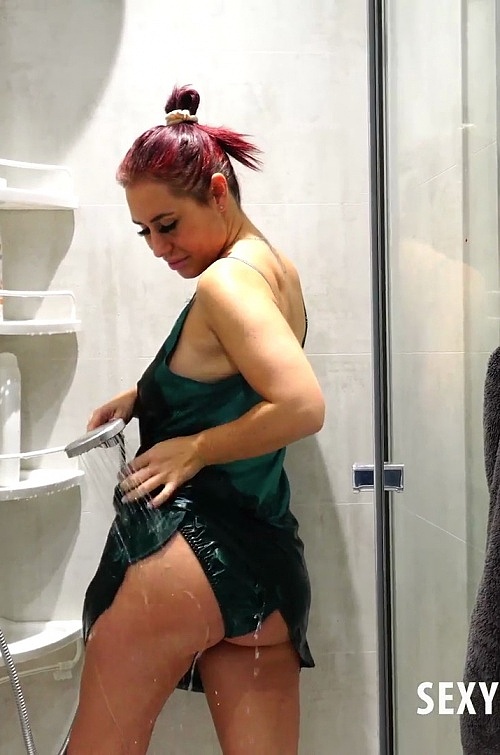 Tags: 4K, Brunettes, Shower Setting, Green Evening Dress, Satin Evening Dress, Satin Dress, Bare Legs, Bare Feet, Wet Look, Wet Satin, Wet and Messy, Solo